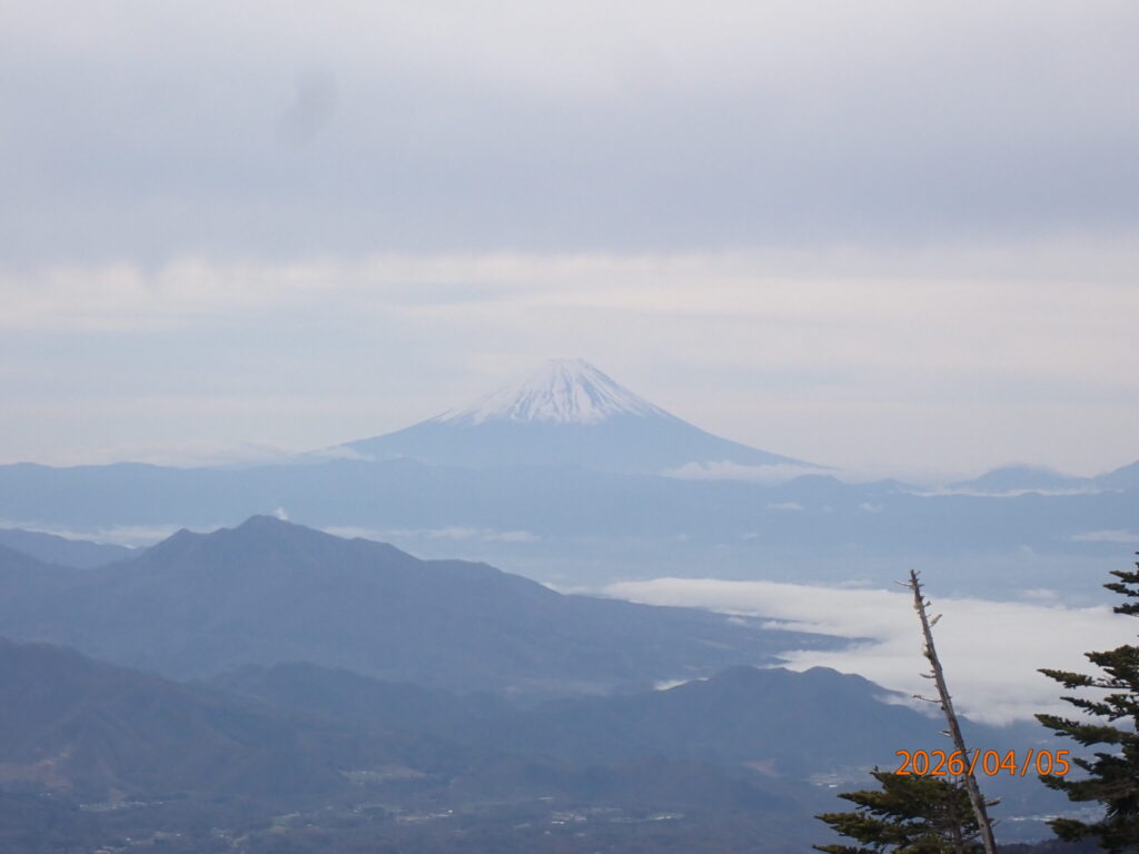 ふもとはすっかり雪は解けていましたが、2200mあたりから積雪があります。絵のような富士山を見ることができました。転んだのはこのような尾根道です。