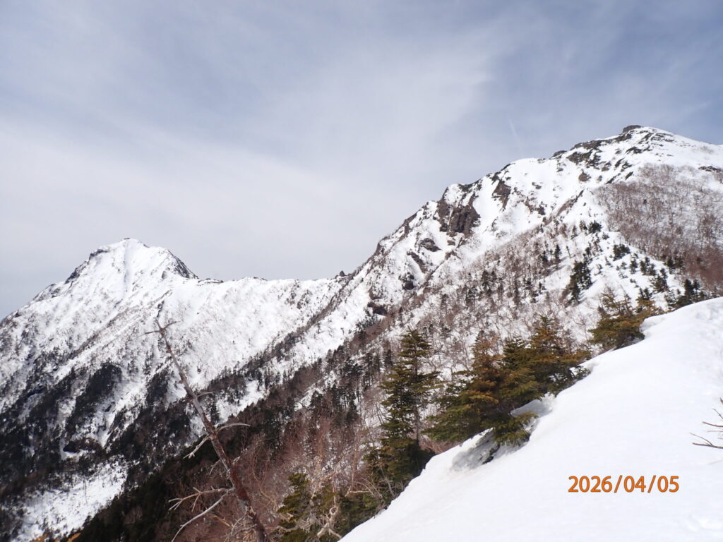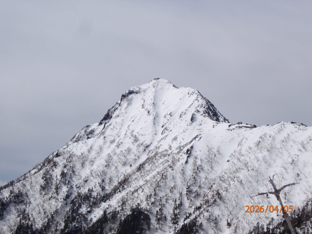見晴台10時30分でいいペースでした。アイゼンに変えようか迷いましたが雪が湿っておりトレースがなくけりこみでステップを作れば上りはこのまま、下りでアイゼンにしようと考えました。先行の方はワカンでした。