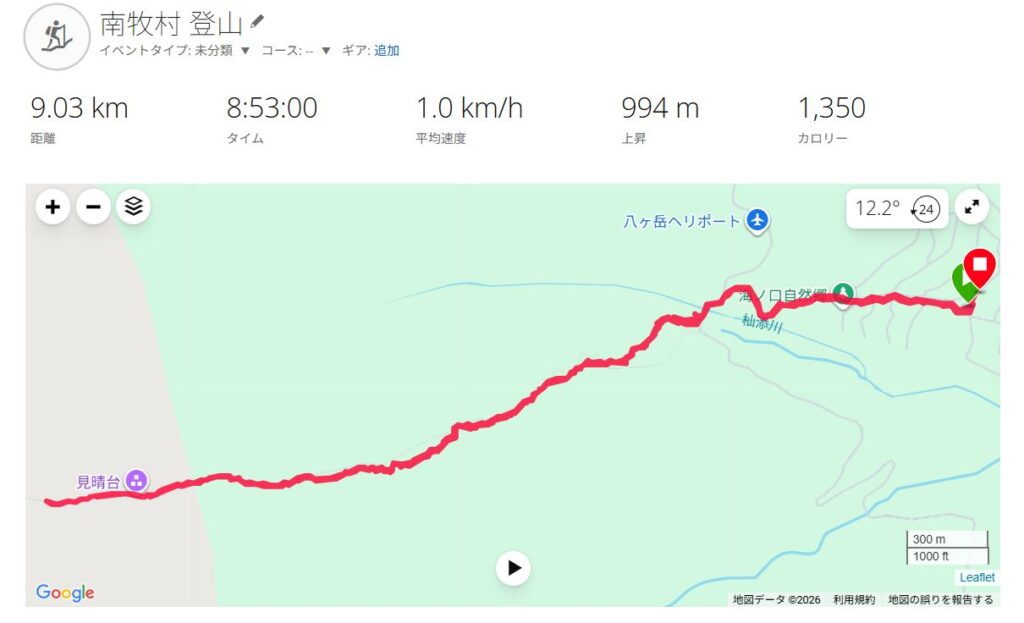 - その他:モンベルチェーンスパイク(歩き始めてすぐに装着)、patagoniaマイクロパフフーディ(使用せず)