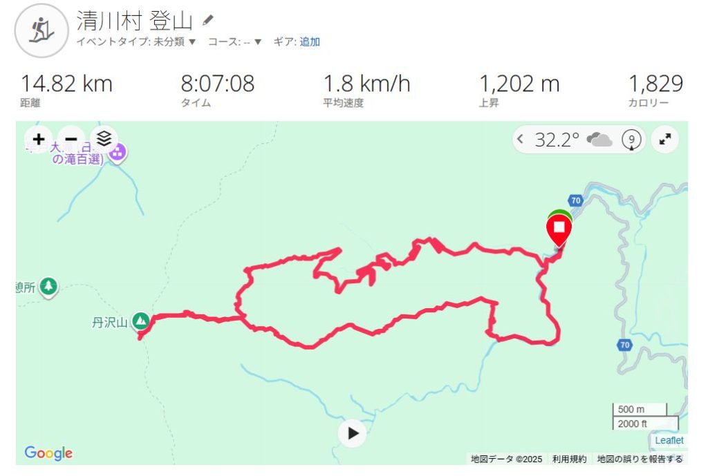気温のログはありませんが、とても暑くて、水分量は1.5Lと熱中症になりそうなぐらいでした。