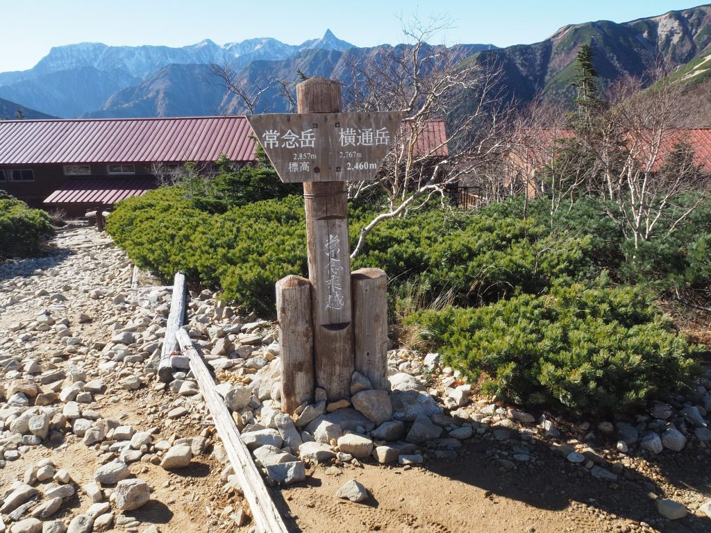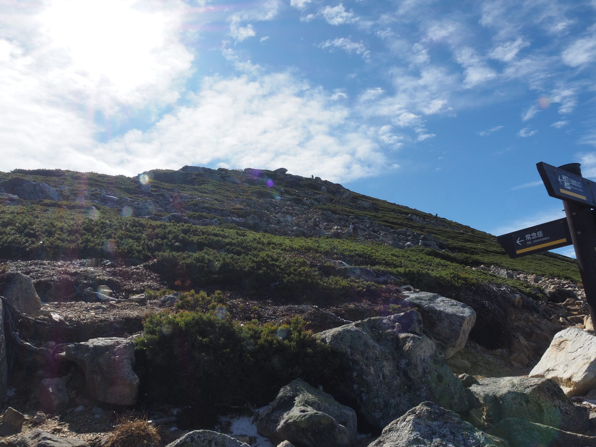 常念小屋への分岐点で見上げてから最後の登りに向かいます。