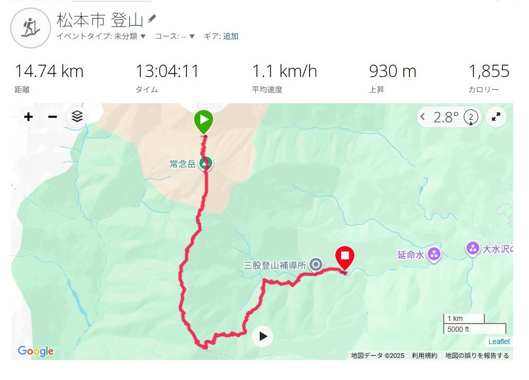 翌朝から約9時間50分で常念小屋にたどり着きました。休憩込みの時間です。