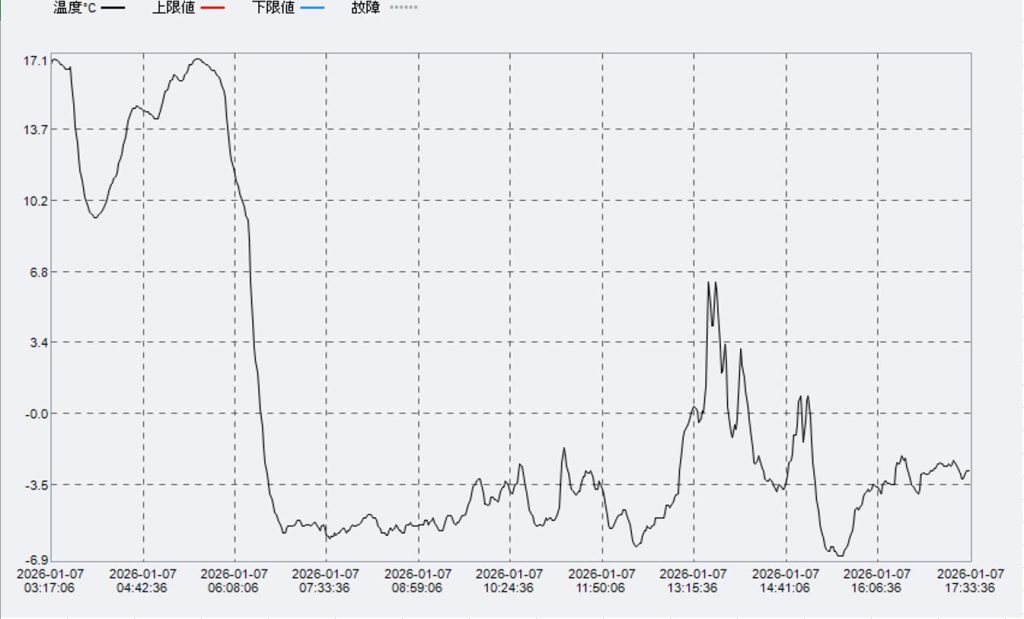 気温変化です。3時起床でロガーのスイッチを入れました。美濃戸口が6時30分です。-5℃ぐらい。14時ぐらいが赤岩の頭です。稜線ですが快晴で微風絶好の天候でした。ほとんどは零下です。